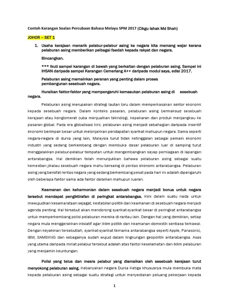 Contoh karangan bahasa melayu spm 2017. Kita baru sahaja meraikan sambutan hari alam . Soalan bahagian a dan bahagian b kertas 1 bahasa .